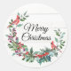 Cardinal Merry Christmas Watercolor Wreath Classic Round Sticker