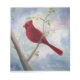 From an original mixed media painting by Brenda Thour of a red male cardinal sitting on a bare tree branch with an abstract blue and pink sky. Copyright by Brenda Thour 2005.
