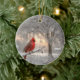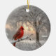 Cardinal On a Snowy Branch Ceramic Circle Ornament