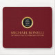 Enhance your workspace with this cardinal red leather print mouse pad, designed to combine style and functionality. Featuring a luxurious gold logo and the option to add two lines of custom text, this mouse pad is perfect for personalising with your name, business, firm, or any other details of your choice.