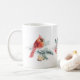 This design features a watercolor illustration of Cardinal Bird and Red Robin resting on pine branchlets covered in snow.