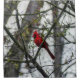 A male cardinal sitting in my Mimosa tree in the early spring.