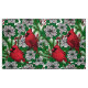 Hand-drawn Christmas pattern with cardinal birds, poinsettia flowers, winter berries, and fir branches