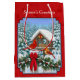Cardinals Christmas Birdfeeder Red Medium Gift Bag