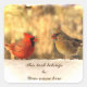 Easily customise the text on these bookplate stickers which feature Mr. and Mrs. Northern Cardinal. It is autumn with glorious foliage in the background but the first snow has fallen to give us a preview of winter. He is a brilliant red colour. She is orange, gold and brown. Both have crests and orange beaks. They are truly the royalty of backyard birds with their distinctive song and lovely colours. Terrific for identifying the books in your own collection, they will also make a wonderful gift for book lovers!