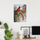 A pair of northern cardinals (Cardinalis cardinalis) perch on a rose bush in this wintry scene of birch trees, snow and rose hips. A vintage illustration from 1915.