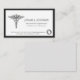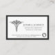 A minimal and Cardiologist business card featuring a medical caduceus symbol on a simple black, gray, and white one-sided card.