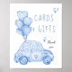 Cards and Gifts Table poster with watercolor car and bunch of blue balloons. Cute trendy design for your little sweetheart's valentine birthday or a love heart themed party at any time of the year. Please message me if you would like any matching products.