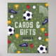 This modern soccer-themed kids’ birthday cards and gifts sign features a vibrant green design with playful illustrations of a football (soccer ball), trophies, stars, goals, and soccer boots. Easily personalize the poster as needed —perfect for signing guests to your favor table.