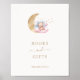 This cute books and gifts sign features a watercolor illustration of a baby bear sitting on a pink and blue cloud with a gold moon and surrounded by stars. Customise them with your details and utilise the editing tools for further adjustments such as font size, placement, and colour.