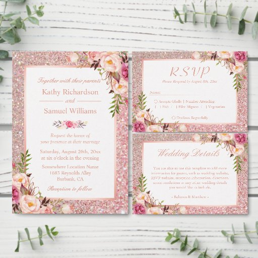 Rose Gold Glitters Pink Floral Invitation SuiteDesigned by Scott C.