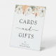 Cards and Gifts sign with a border of autumn foliage and pumpkins. Matching Rustic Autumn collection in the Adore Paper Co. Zazzle shop.