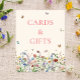 This is a pretty and bohemian cards and gifts sign for a bridal shower. The design features elegant and summery delicate wildflower pastel coloured florals in pretty shades of blue, terracotta, pink, rust, purple and yellow. The butterflies and bees add the finishing whimsical and pretty touch.