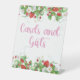 A berry sweet baby is on the way! This "Cards and Gifts" baby shower sign features cute strawberries, white flowers and greenery and is complemented with a cute and fun handwriting style typography.