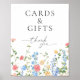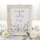 Guide your guests in style with this romantic wildflower Cards & Gifts wedding sign. Featuring delicate watercolor blooms in soft blush, blue, and golden hues along the bottom, this elegant design blends garden-inspired charm with timeless typography.