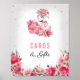 This is the Cards & Gifts sign for the baby shower. The design is a darling pink flamingo, ballerina, momma and baby girl, with pink rose floral wreaths on head and larger rose bouquet beside bodies. Silver background with cute silver triangles. White centre with pink rose florals at bottom edge.