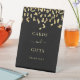 A black background decorated with faux gold confetti. Text: Cards and Gifts, Thank You!