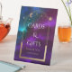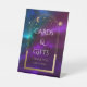 Cards & Gifts Cosmic Purple Teal Gold Sun Moon Astronomy Space Wedding Event Pedestal Sign features gold sun, moon and stars with a golden frame on a colourful mystical purple, teal and blue cosmic background. Inside is your text. Designed for you by Evco Studio www.zazzle.com/store/evcostudio