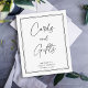 This is an elegant, minimalist and modern cards and gifts table sign. It features a simple and stylish design using simple typography in striking and classic black and white. Please contact the designer for any queries or any requests for variations on this design..