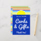 Cards and gifts, thank you Baby Shower sign. Matching design for Here Comes The Son Summer Stripes Baby Shower. A modern and fun and colourful design for an upbeat summer baby shower. Cheerful and fun font for customisable text area.