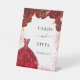 Cards gifts red white dress flowers party pedestal sign