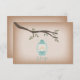 An outdoors wedding r.s.v.p. featuring an illustration of a light blue lantern hanging from a tree branch with green leaves. Background is card stock inspired.