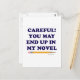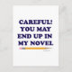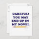 Careful or you will end up in my novel. This funny writer’s saying is finally available in a basic text style.
