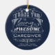 The perfect way to show your appreciation to a caregiver. This stylish ornament shows the message 'Thank you for being an awesome Caregiver - or change the name to suit your supportive carer or caseworker. This design would work well for carers or assistants looking after an elderly relative in a care home, cancer support staff - or homeworkers who visit a disabled family member. Also suitable for doctors and nurses! In dark blue and white, this stylish typography design makes a modern and eye-catching way to say thanks.
