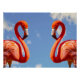 Identical Caribbean flamingos Latin name Phoenicopterus ruber facing each other with a blue sky background