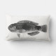 Lumbar pillow in a digitally coloured and enhanced vintage illustration of a tropical fish, commonly found in coral reefs, (Halichoeres Wrasse), in shades of grey / grey, black and white on a light white background