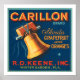 Vintage fruit crate label for Carillon brand Florida grapefruit and oranges.