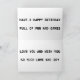 I was concerned that the card would not arrive on time but Zazzle came up trumps and the card arrived on the day before her birthday - perfect! I didn't see the card as it went straight to our family in New Zealand. However they did send a photo and it looked excellent!