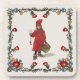 Sweden's fine artist Carl Larsson's daughter Brita dressed for the Christmas holidays as Iduna, a Swedish folklore mythology figure. She is wearing a red costume and carrying a basket of golden apples. This Scandinavian design has a Norwegian rosemaling border.