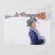Lisbeth's New Hat, 1909. Carl Larsson's daughter Lisbeth shows off her fine new hat. Behind her, the family dog ploughs through the deep snow towards home. The juxtaposition of the green hat and red houses hints of Christmas, but this lovely postcard would be appropriate throughout the winter months.