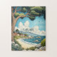 This puzzle, in modern digital illustration style, is inspired by the western U.S. shoreline with a sample from Carmel, California.