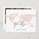 This thank you card features a blush pink watercolor world map and elegant script font. This card is perfect for your travel or destination wedding, baby shower, bridal shower, or any other event. Easily add a special message on the back and change out the photo for your unique touch.