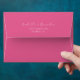 Carmine rose pink and mango colours combine with a pretty freesia flower casually strewn within the inside of envelope for a joyful, happy look.