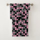 Carnation Pink, Black, Grey Random Mosaic Squares Bath Towel Set