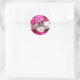 A sheet of stickers with pretty pink and white carnations and 'Happy Birthday!' written in black across the center. See also matching carnation buttons/badges.