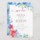 This design includes a flowing bouquet of dark pink, peach and yellow carnations and blue forget me nots. Simple and sweet, this design is perfect for informal to semi-formal weddings. This card is part of the Carnation & Forget Me Nots Wedding Suite of cards created by Simply Farmhouse Press.
