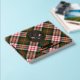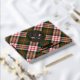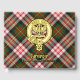 Clan Carnegie crest badge surrounded by a strap and buckle over dress tartan background. Custom front, back and spine text.