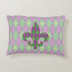 A harlequin pattern of green and purple is transformed into a playful argyle with an overlay of gold diamond outlines and fleur de lis, creating a fun and colourful pattern perfect for any New Orleans influenced Mardi Gras celebration. On the back a faded version of the argyle sits behind a patterned fleur de lis to add a fun final note.