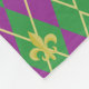 A harlequin pattern of green and purple is transformed into a playful argyle with an overlay of gold diamond outlines and fleur de lis, creating a fun and colourful pattern perfect for any New Orleans influenced Mardi Gras celebration.