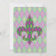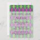 This invitation features a harlequin pattern of green and purple is transformed into a playful argyle with an overlay of gold diamond outlines and fleur de lis, creating a fun and colourful pattern perfect for any New Orleans influenced Mardi Gras celebration. The lower portion of the card has some sample text that you can customise to create a personalised invite for your party or event, and the back features a patterned fluer de lis on a faded argyle background for that special last touch.