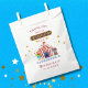 Step right up to the most spectacular Circus Birthday Party! Treat your guests with these delightful, personalised favour bags that capture all the charm and excitement of the big top. Featuring a whimsical design against a crisp white background, each bag showcases a cute elephant and a playful clown skilfully juggling vibrant red balls. The backdrop of a classic red and white striped circus tent adorned with gold stars adds an extra touch of magic and wonder. A perfect way to say thank you to friends and family for making your precious child's day a happy celebration.