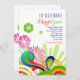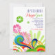 A festive, white, invitation with bright, abstract, shapes and carnival colours that's perfect for a Mardi Gras celebration. (FP)