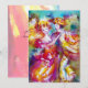 Colourful ,elegant and vibrant fine art invitation.Romantic carnival dancers : Artistic ,whimsical,expressive dance figures, beautiful blonde woman in feathered sparkling costumes is dancing with a young Harlequin with a golden red rose on the backside of the card.Watercolor painting in bright pink,fuchsia,green,red,blue,yellow colours , gold sparkles inspired from Comedy of Art (Commedia dell'arte ) and Carnival of Venice . It is also a beautiful design for wedding announcements,programs,save the date,anniversary,gatherings, romantic engagements,bridal shower,special occasions,Holiday party,Mardi Gras masquerade ball,birthday parties.Sweet 16,Quinceanera costume balls, New year's eve celebrations ,Valentine's day dinner just about any event you wish !