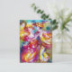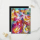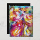 Colourful ,elegant and vibrant fine art design with romantic carnival dancers : Whimsical dance figures, beautiful blonde woman in feathered sparkling costumes is dancing with a young Harlequin. Watercolor painting in bright pink,fuchsia,green,red,blue,yellow colours , gold sparkles inspired from Comedy of Art (Commedia dell'arte ) and Carnival of Venice .