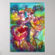 Colourful ,elegant and vibrant fine art design with romantic carnival dancers : Colourful ,whimsical dance figures, beautiful blonde woman in feathered sparkling costumes is dancing with a young Harlequin. Watercolor painting in bright pink,fuchsia,green,red,blue,yellow colours , gold sparkles inspired from Comedy of Art (Commedia dell'arte ) and Carnival of Venice . It is also a beautiful gift for christmas,holiday,special occasions,birthday parties ,New year's eve masquerade ball,Valentine's day.