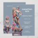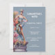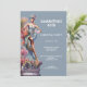 A tall, vivacious man dressed in drag is wearing a stunning pale dusky blue bustier and short skirt plus a matching hat. He is standing on a tall concrete pillar adorned with decorative pink and orange blossoms. Editable white text templates appear to his right and may be customised to suit your festive celebration. This luxurious, elegant and upmarket watercolor ai design is ideal for a festival, carnival, drag queen, lgbqt or circus celebration whether it be a retirement, birthday, halloween or a sit down dinner party. This is suited to both teens and adults